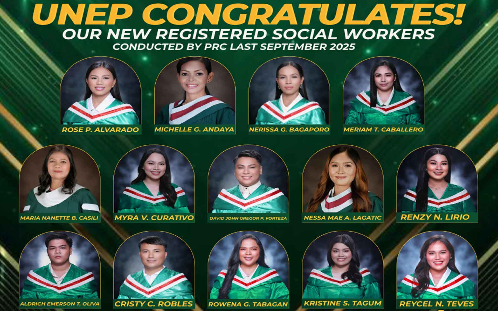 These outstanding individuals passed the Professional Regulation Commission (PRC) Licensure Examination, demonstrating excellence and dedication to social work and community service.